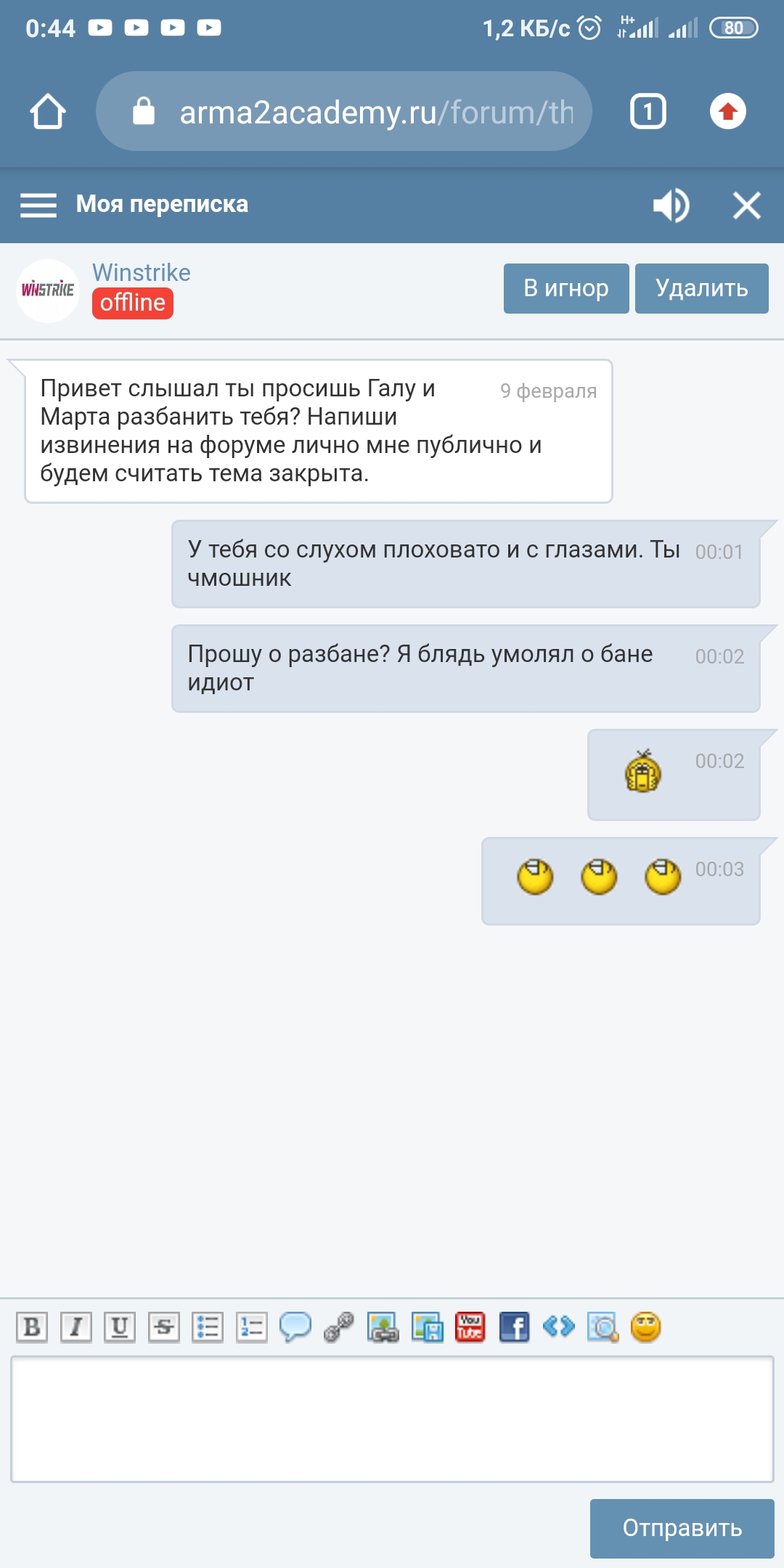 Я то могу представить скрины интересные, но не стану этого делать из за уважения к некоторым людям. Ты же говоришь ложь, и никак это не сможешь подтвердить. Либо, выкладывай скрины переписок с Мартом и Галей, где я их прошу о разбане, либо они просят, хотя я их об этом не просил.17.02.2020 00:50